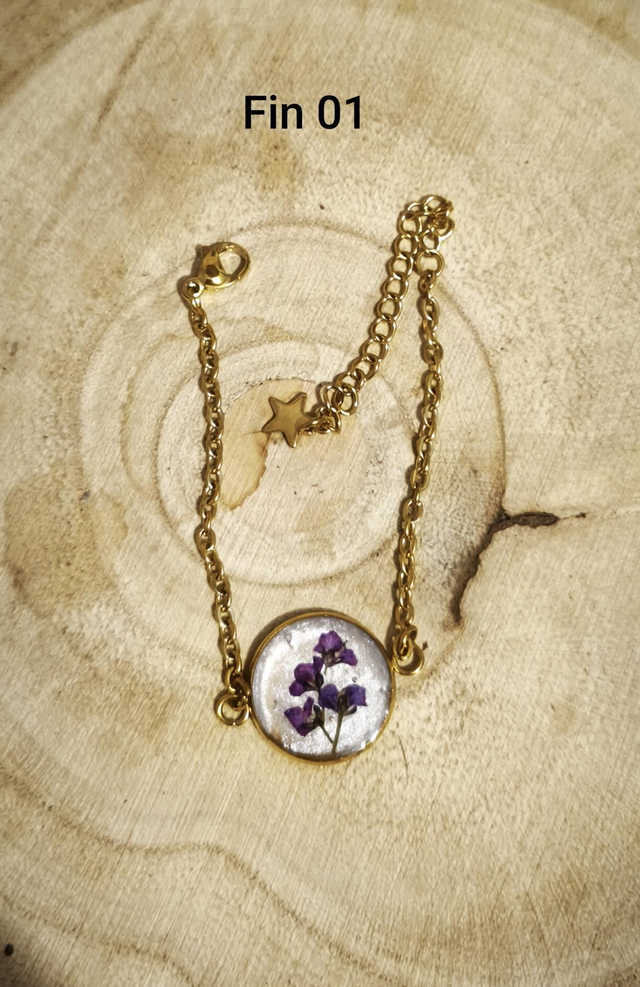 Authentique fleur séchée (fleurs d'œillets) sous résine blanche.