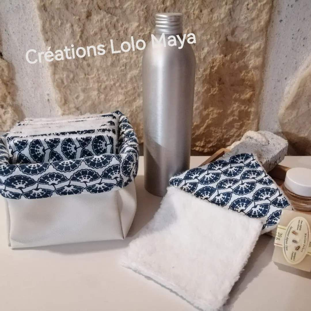 Ensemble de 10 carrés démaquillants POLAIRE avec panière assortie en similicuir blanc.