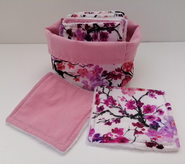 Ensemble de 10 carrés démaquillants POLAIRE avec panière assortie en coton.