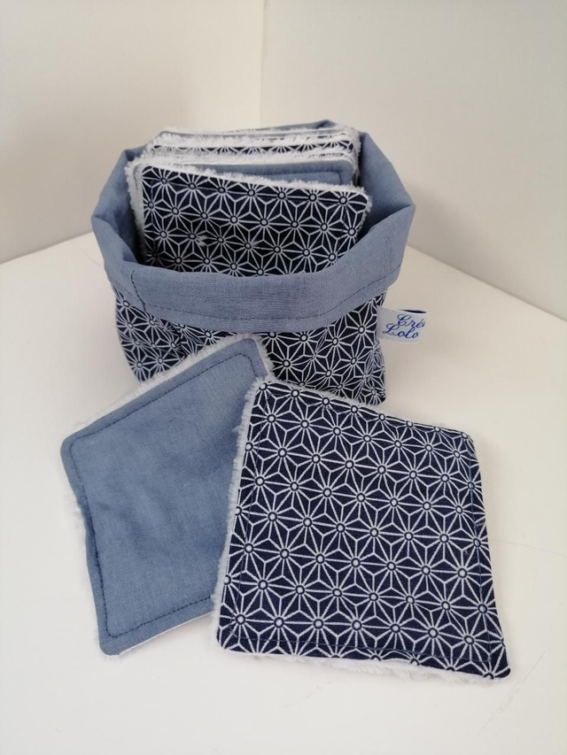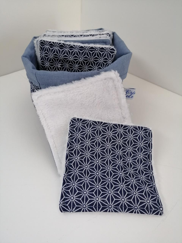 Ensemble de 10 carrés démaquillants POLAIRE avec panière assortie en coton.