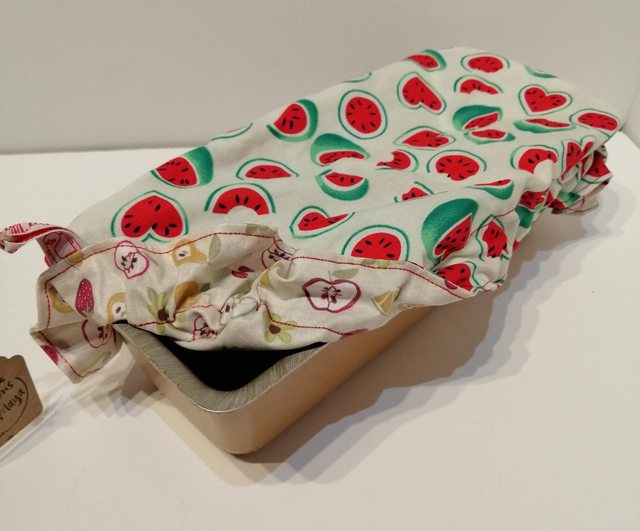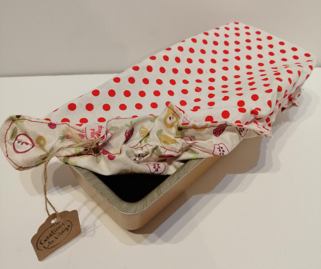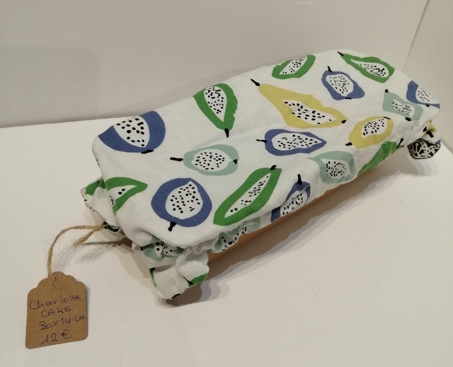 Charlotte alimentaire en coton, doublée intérieure en coton enduit, pour un cake rectangulaire de 30x14cm.