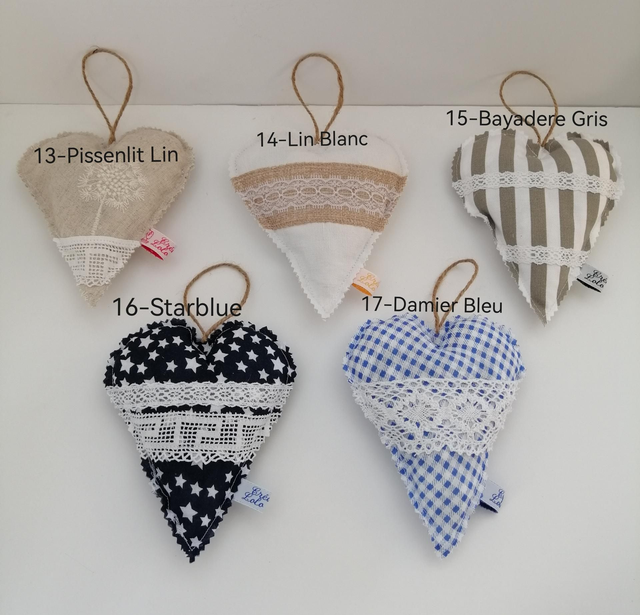 Cœur en tissu à suspendre, rempli de lavande (de mon jardin) et de pur coton. A offrir en cadeau, à suspendre dans le sapin, en décoration ou à mettre dans une armoire... ❤️