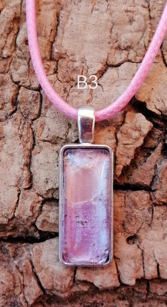 Collier "Barre" rectangulaire en acier inoxydable avec fond en Mica (pigment minéral). Cordon en coton ciré tressé (50cm avec chaîne d'extension de 5cm)