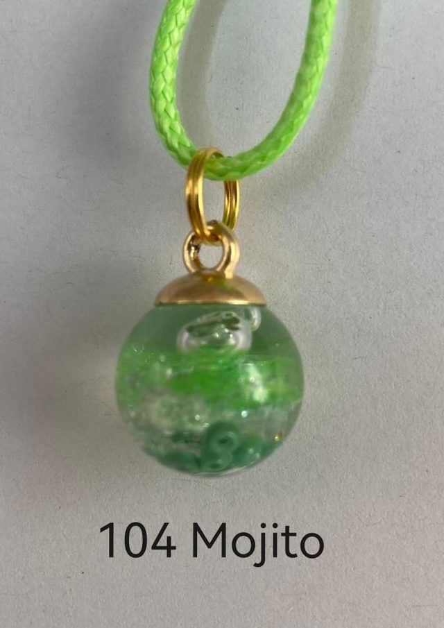 Collier Boule en Verre (avec différentes matières emprisonnées : minérales ou végétales). Pigments minéraux