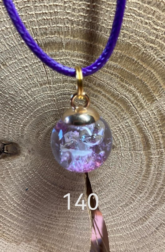 Collier Boule en Verre (avec différentes matières emprisonnées : minérales ou végétales).