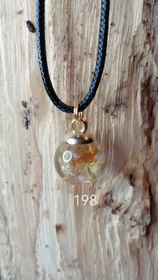 Collier Boule en Verre (avec différentes matières emprisonnées : minérales, végétales ou strass).