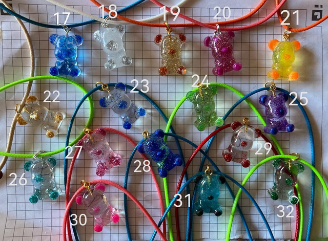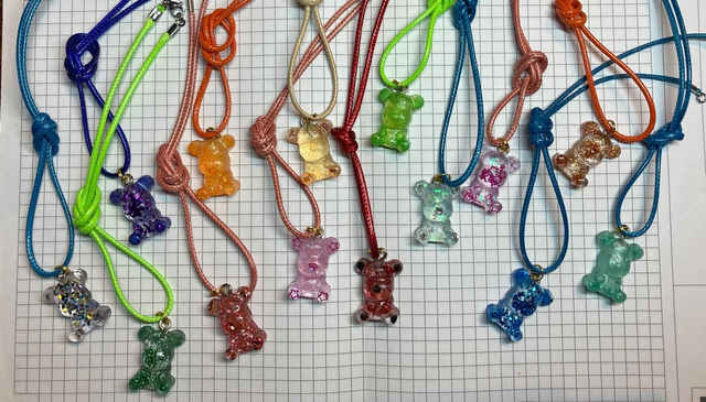 Colliers Nounours en résines colorées, pour enfants (collier tour de cou de 38cm).