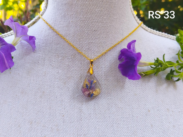 Collier résine avec inclusion minérale ou végétale. Cordon en coton ciré tressé (50cm avec la chaîne d'extension de 5cm) ou acier inoxydable de 50cm.