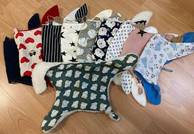 Doudou pour bébés, coton / polaire. 50 x 50 cm environ. Nettoyage à 30° en machine (dans un filet à linge).