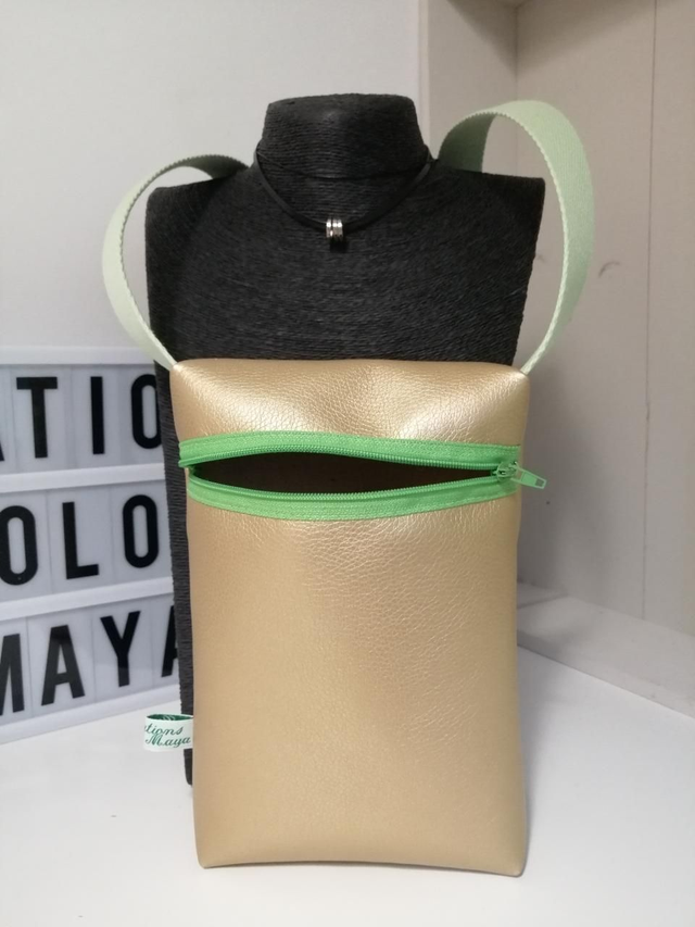 Pochette bandoulière en simili-cuir, non doublée, à zip. Format 15x20cm (pratique pour ranger son téléphone ainsi les papiers nécessaires). Différentes couleurs de sangles en stock, n'hésitez pas à m'envoyer un message...
