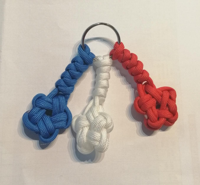 Porte-clé ensemble de 3 symboles Bleu-Blanc-Rouge (hauteur 7cm sans l'anneau ; 9cm avec l'anneau)