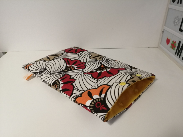 Pour tablette de 30x19 cm maximum. Tissus coton intérieur et extérieur, molleton interne.