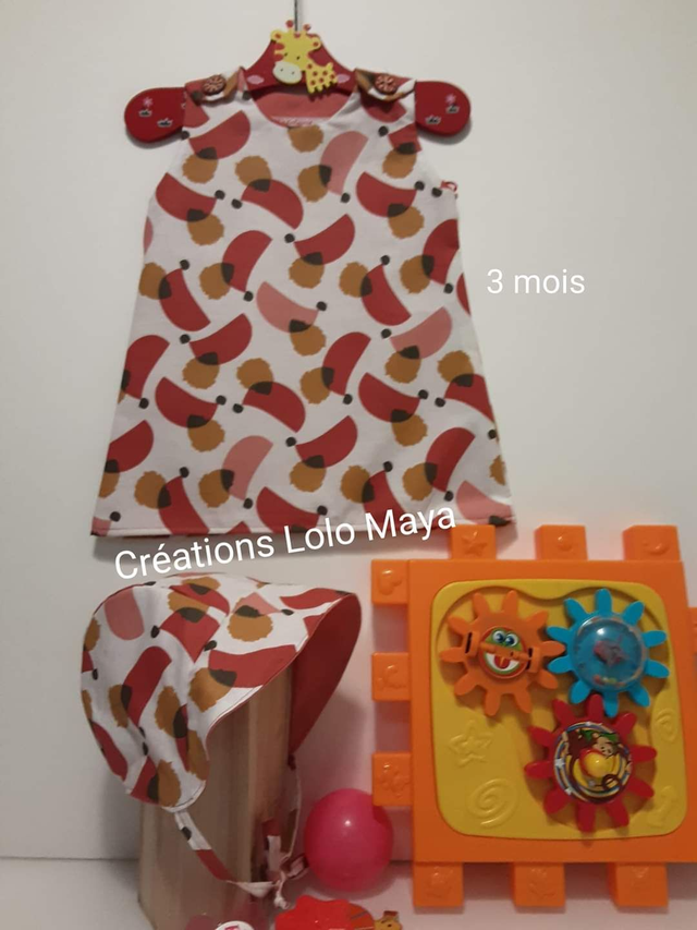 Robe bébé fille 3 mois tout coton "Oranges". Le béguin est en supplément à 10€.