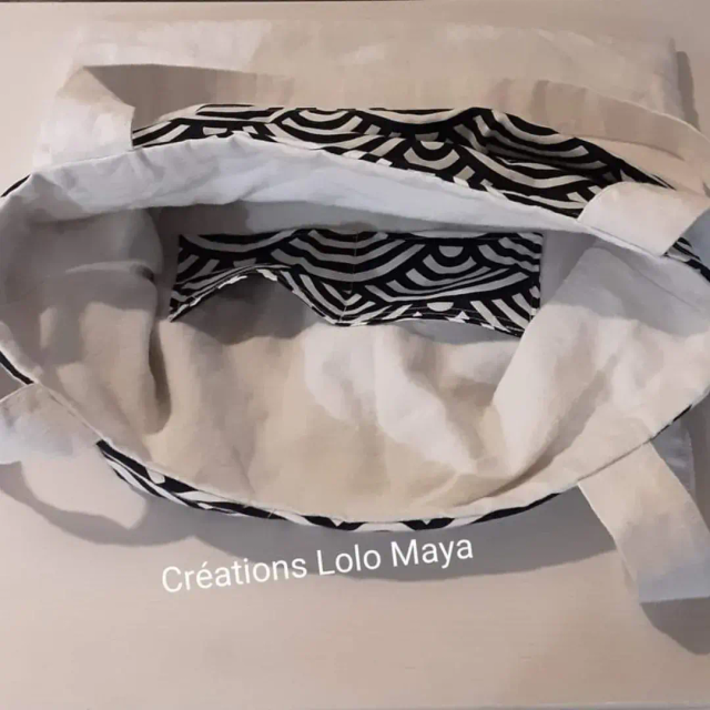 Tote-bag tout coton blanc et bleu style japonais Seigaiha