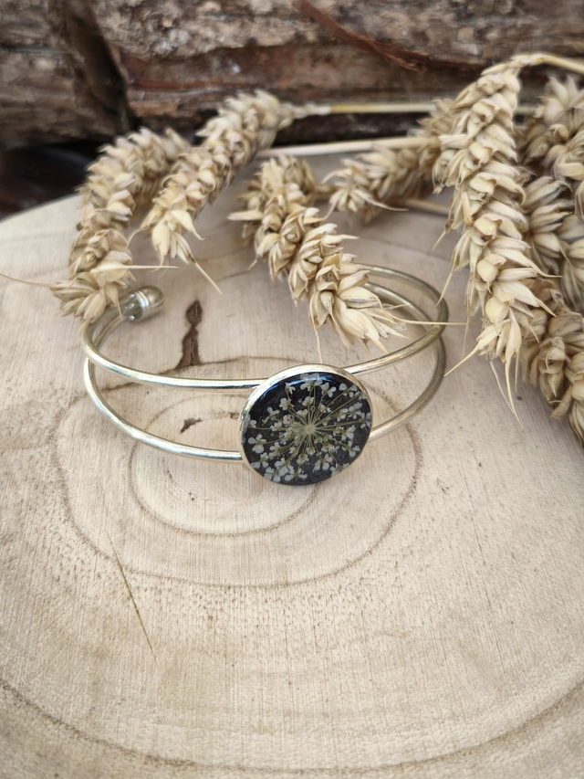 Authentique fleur séchée (fleur de carottes) sous résine colorée.